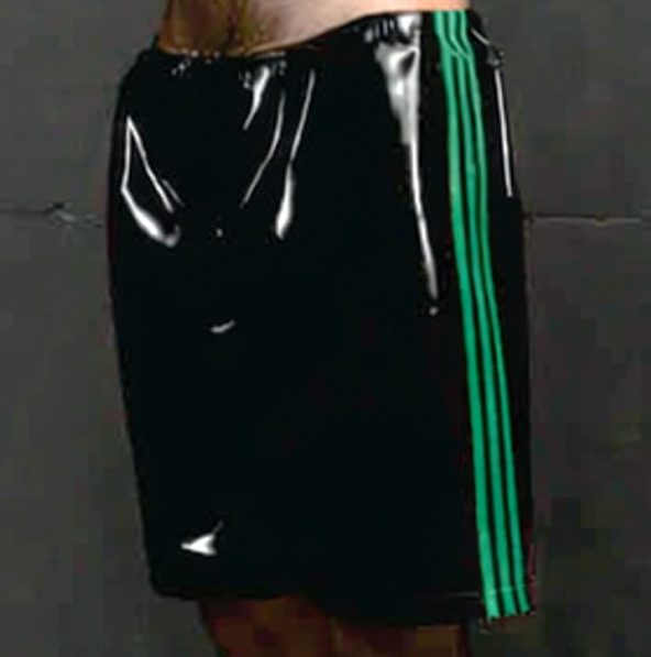 Short de fútbol soccer de látex para hombre. Disfruta de una gran prenda de látex para hombre, hecho de la mejor calidad. 0.4mm de espesor sin costuras ni cremalleras. Un producto hecho a mano, en látex negro, con bandas laterales de látex en color: rojo, amarillo, blanco o verde. Tienes 4 opciones para lucir increíble y poder lucir el látex en todo su esplendor. Al hacer tu pedido y no se tenga la talla y color deseado, el tiempo de entrega de tu pedido es de aproximadamente 15 días.
