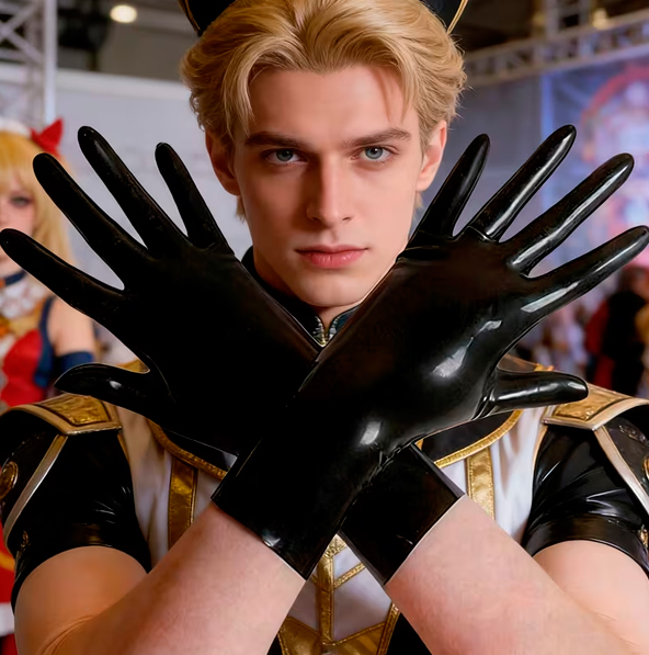 Guantes de látex natural color negro y rojo para fiesta, evento o fisting fetish