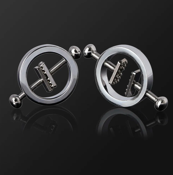 Pinzas pezoneras circulares de acero con prensa, estimulador de pezones para hombre o mujer. Pinzas de presión ajustables.